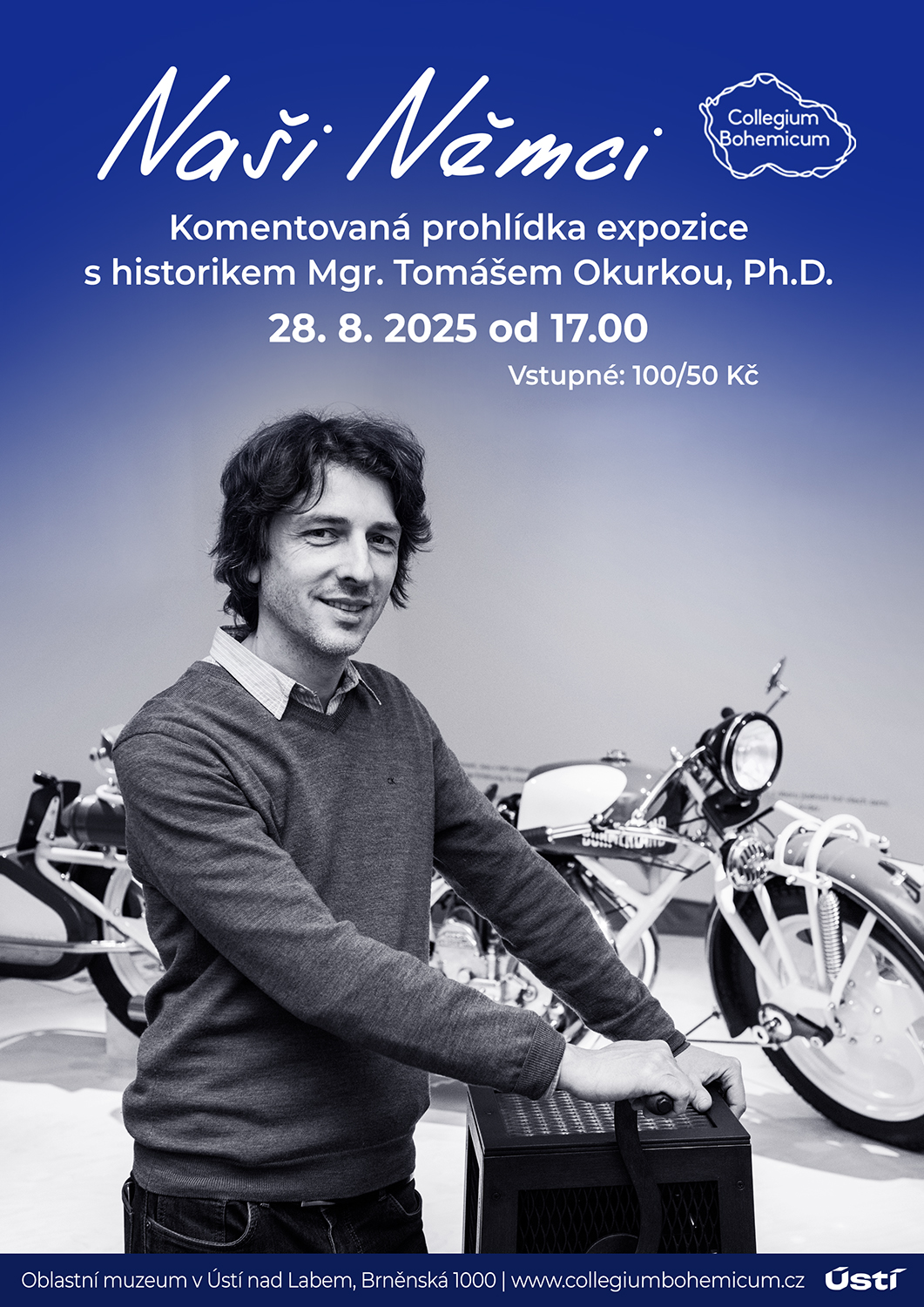 Je tady další komentovaná prohlídka výstavy Naši Němci, tentokrát s Mgr. Tomášem Okurkou, PhD v Oblastním muzeu v Ústí nad Labem, od 17:00 dne 28. 8. 2025. Pro úplnost uvedeme, že akce se koná díky podpoře Magistrátu města Ústí nad Labem. Těšíme se na vás!